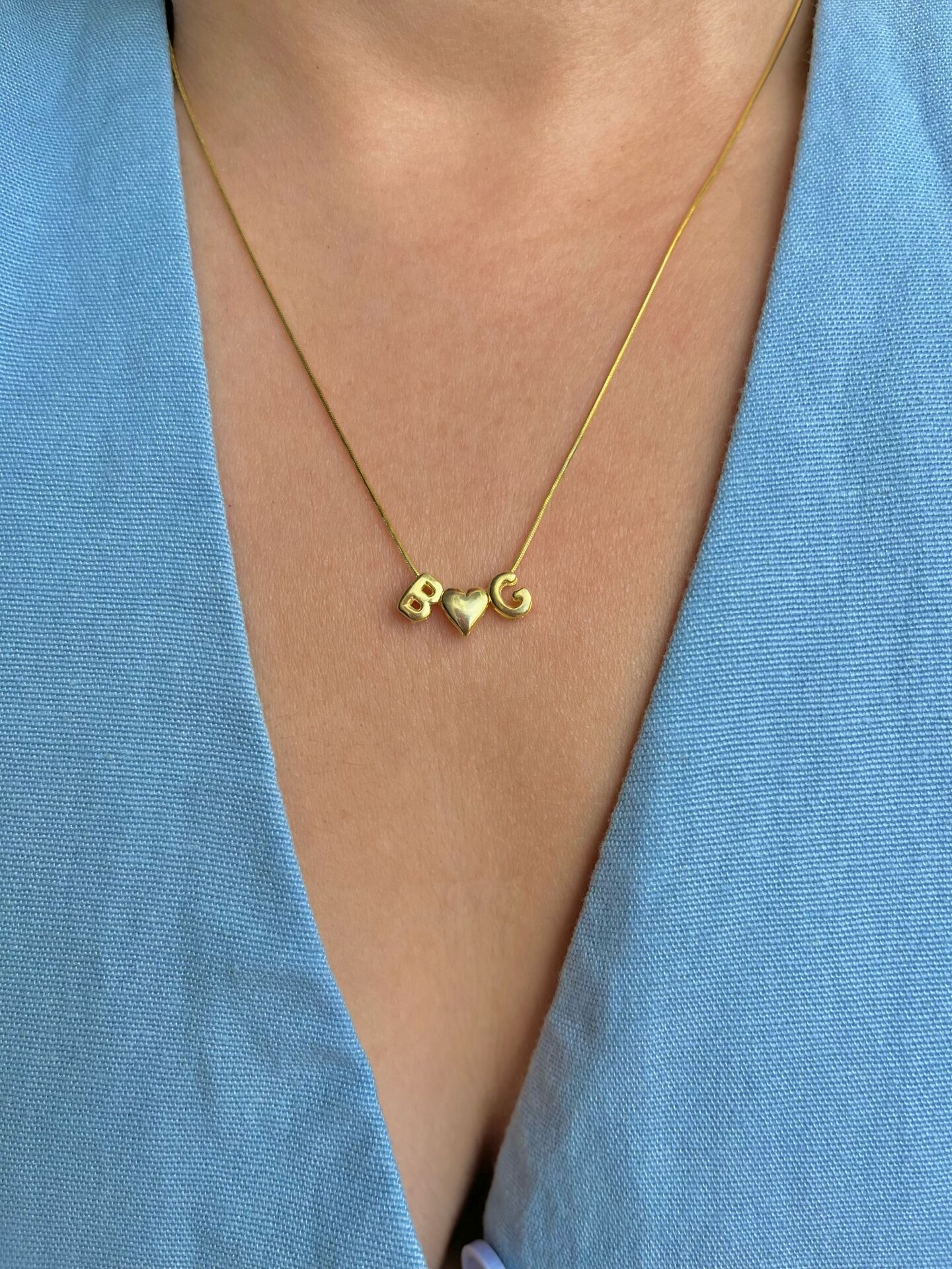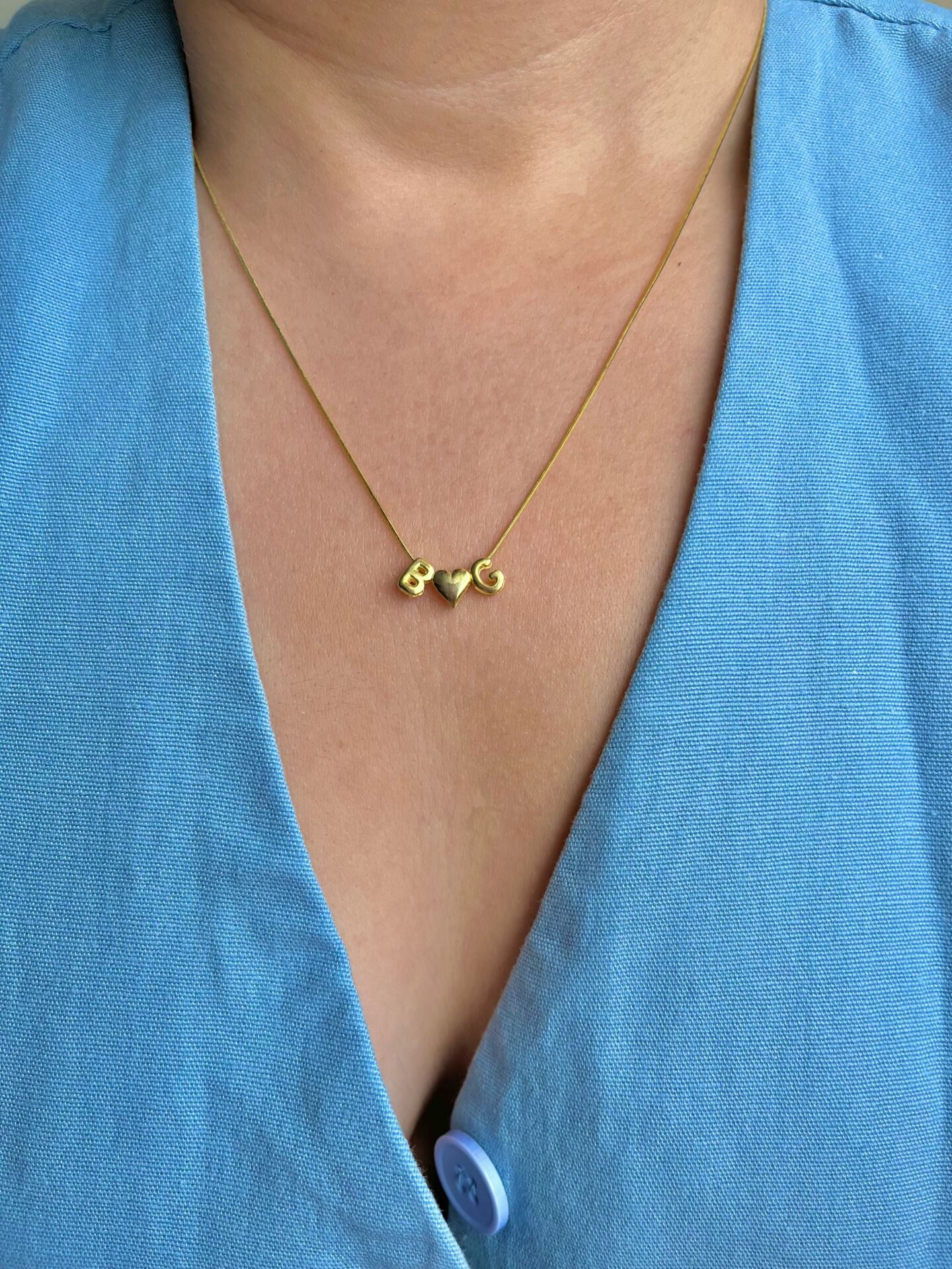 925 Ayar Gümüş Bubble 2 Harfli Kolye