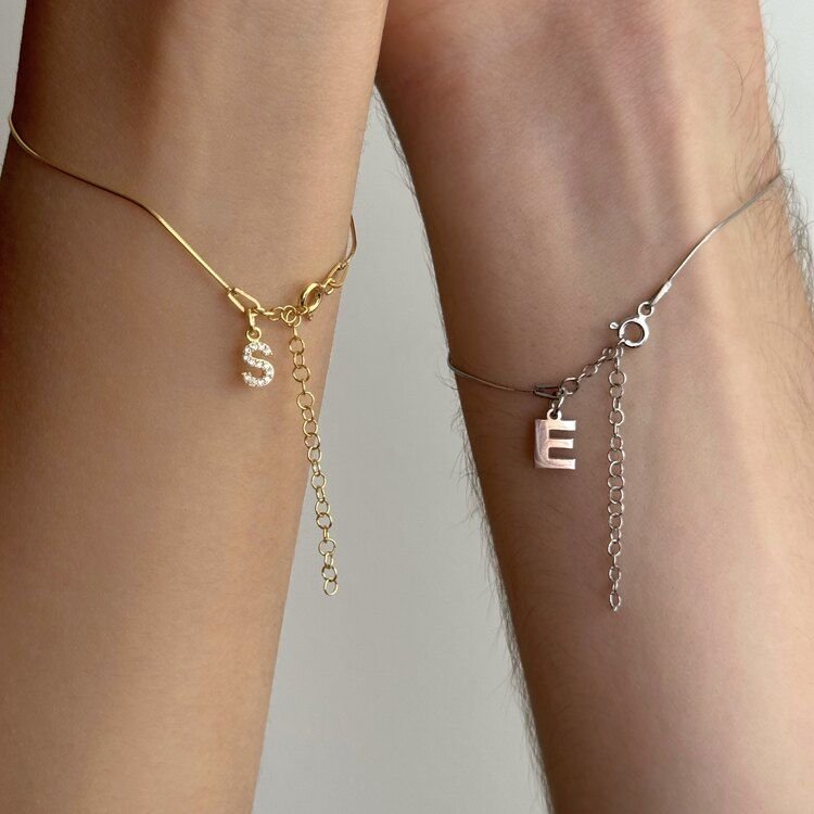 925 Ayar Gümüş Çift Bilekliği Harfli