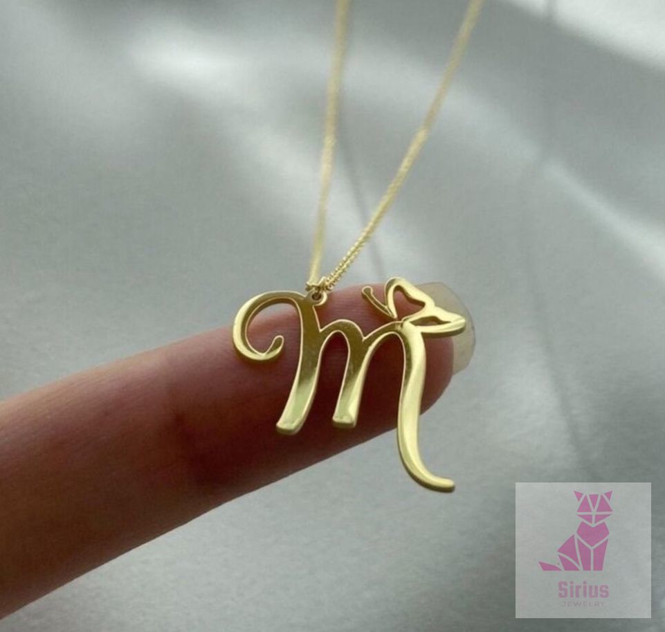 925 Ayar Gümüş Kelebekli Harf Kolye
