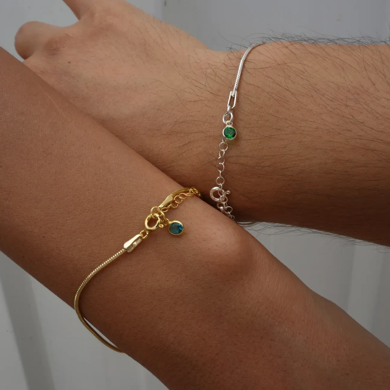 925 Gümüş | Doğum Taşlı Çift Bilekliği