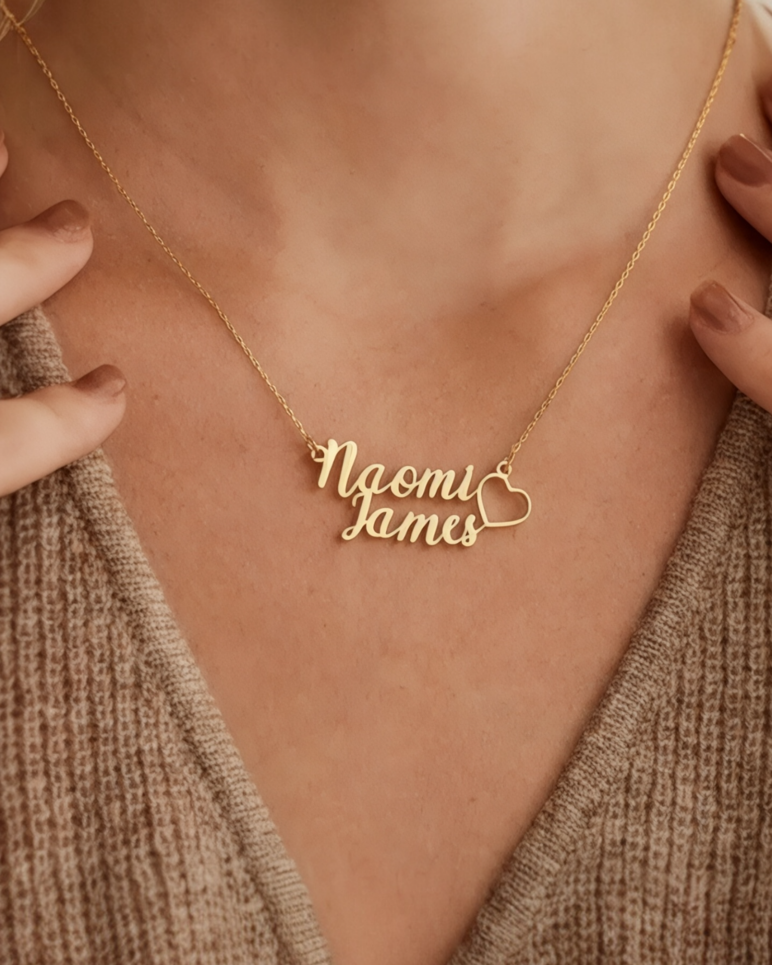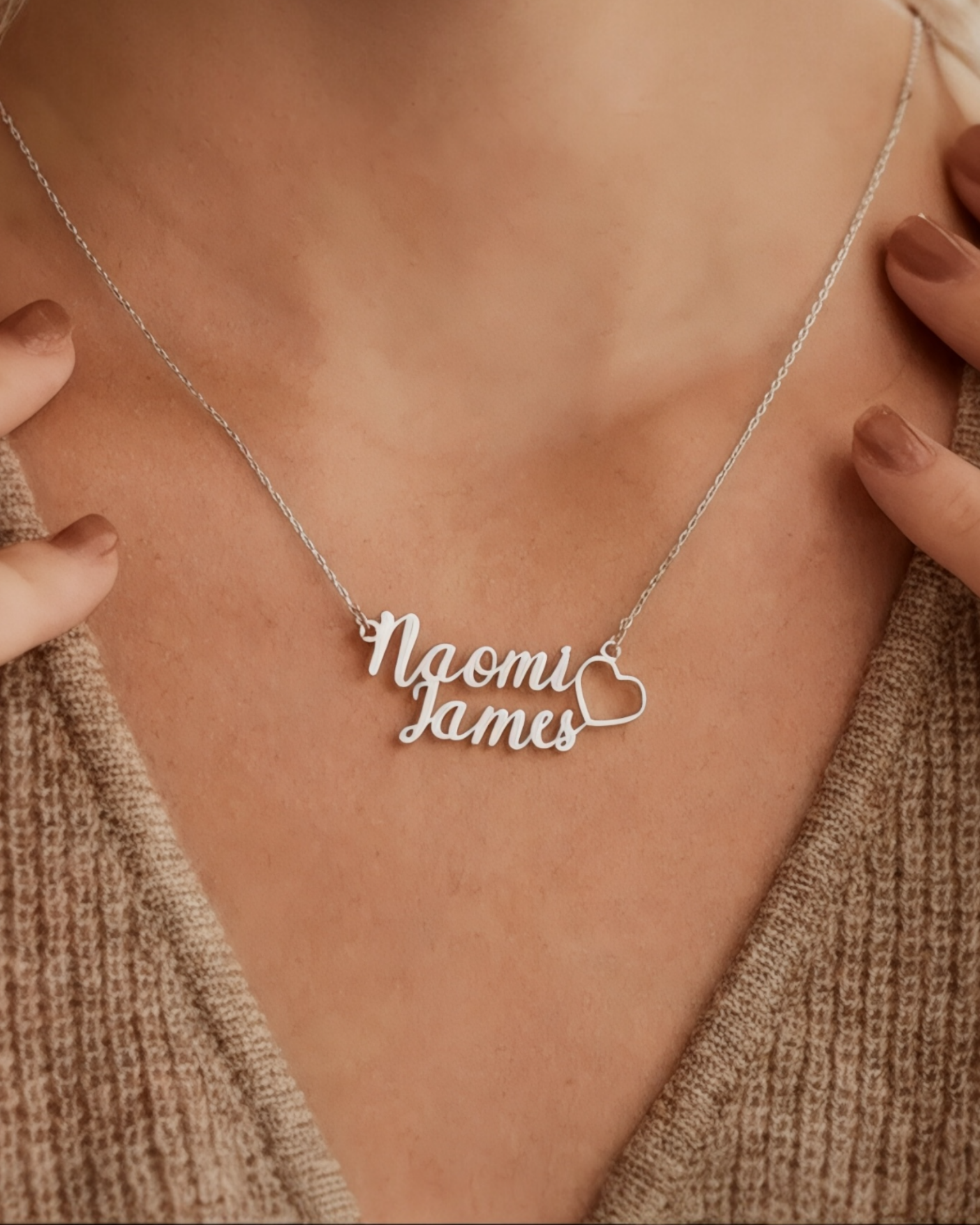 925 Gümüş | İki İsim Tek Kalp Kolye