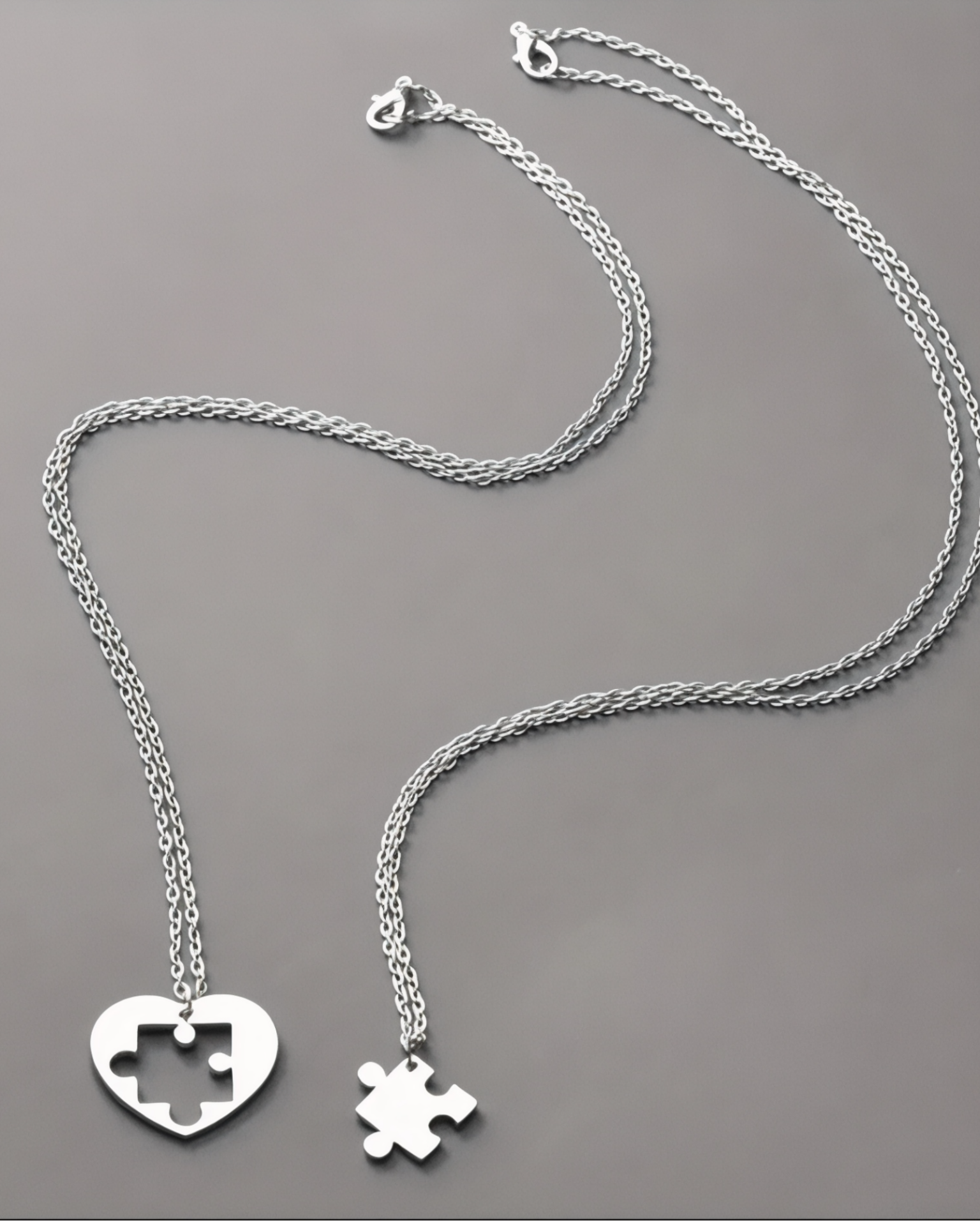 925 Gümüş | Kalp Yapboz Çift Kolyesi