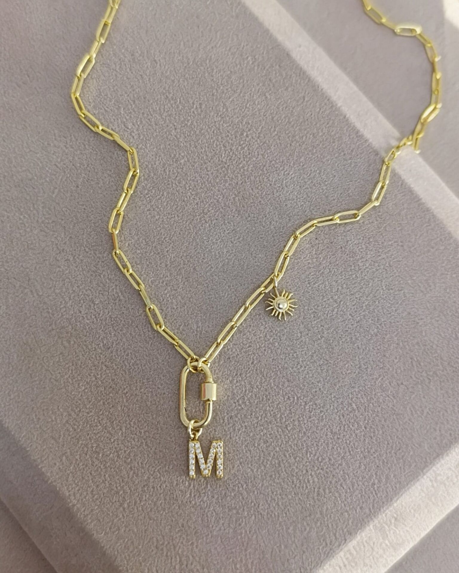 925 Gümüş | Kilit Detaylı Harf & Charm Kolye