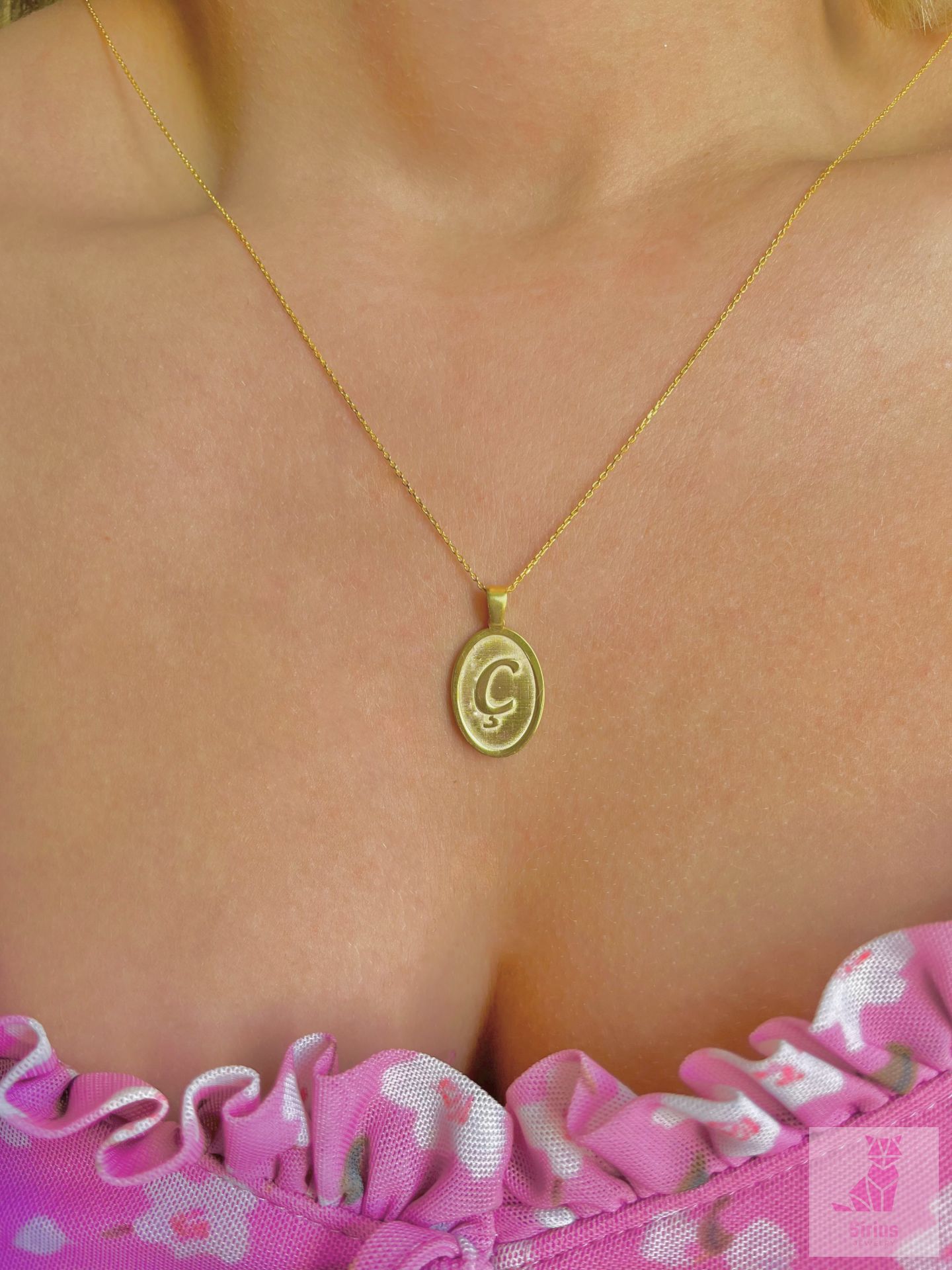 Vintage Plaka Harf Kolye | 925 Ayar Gümüş