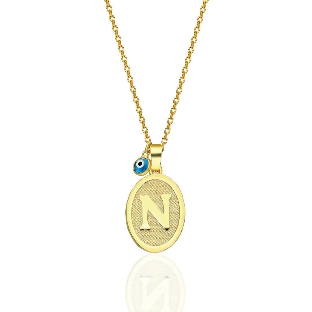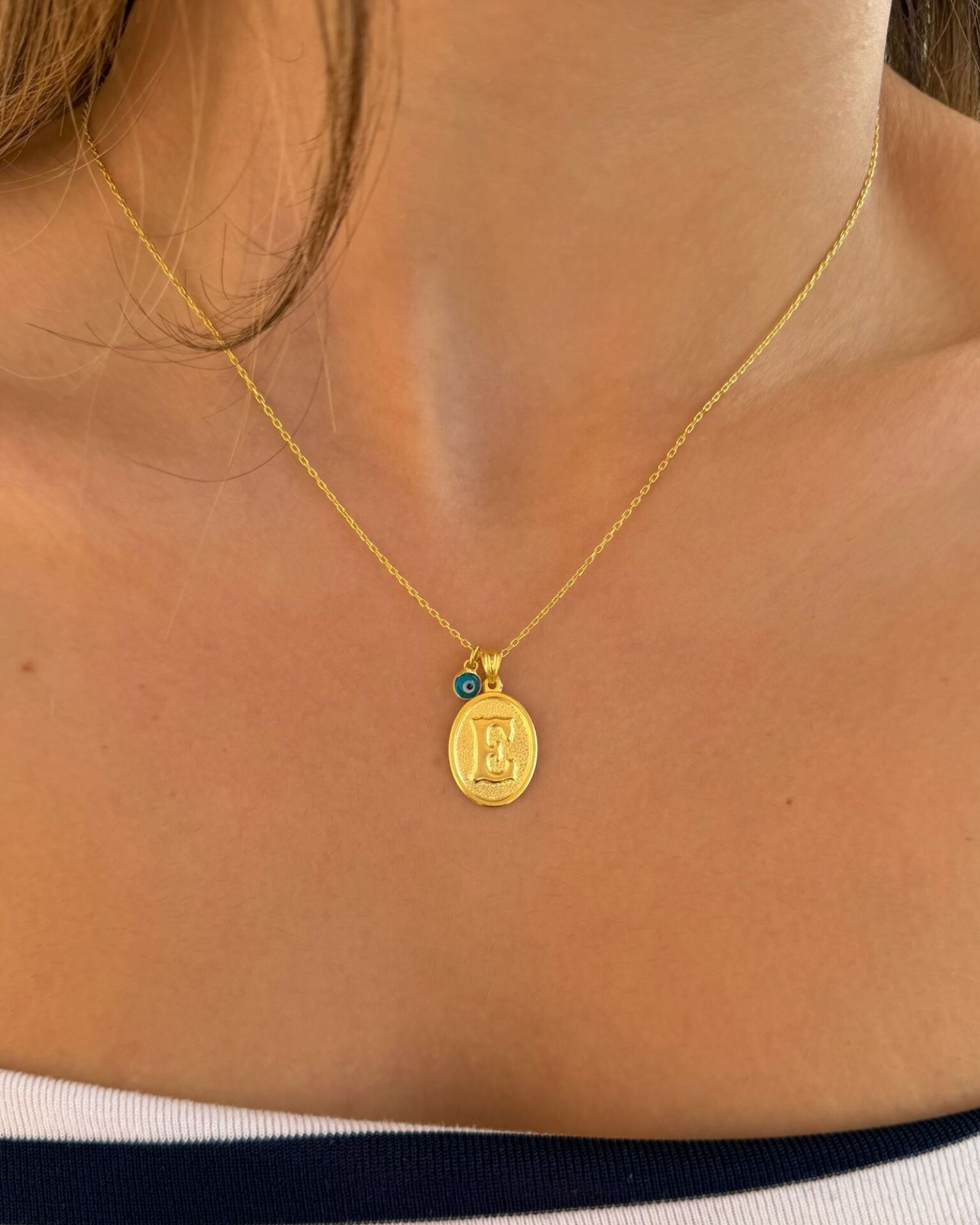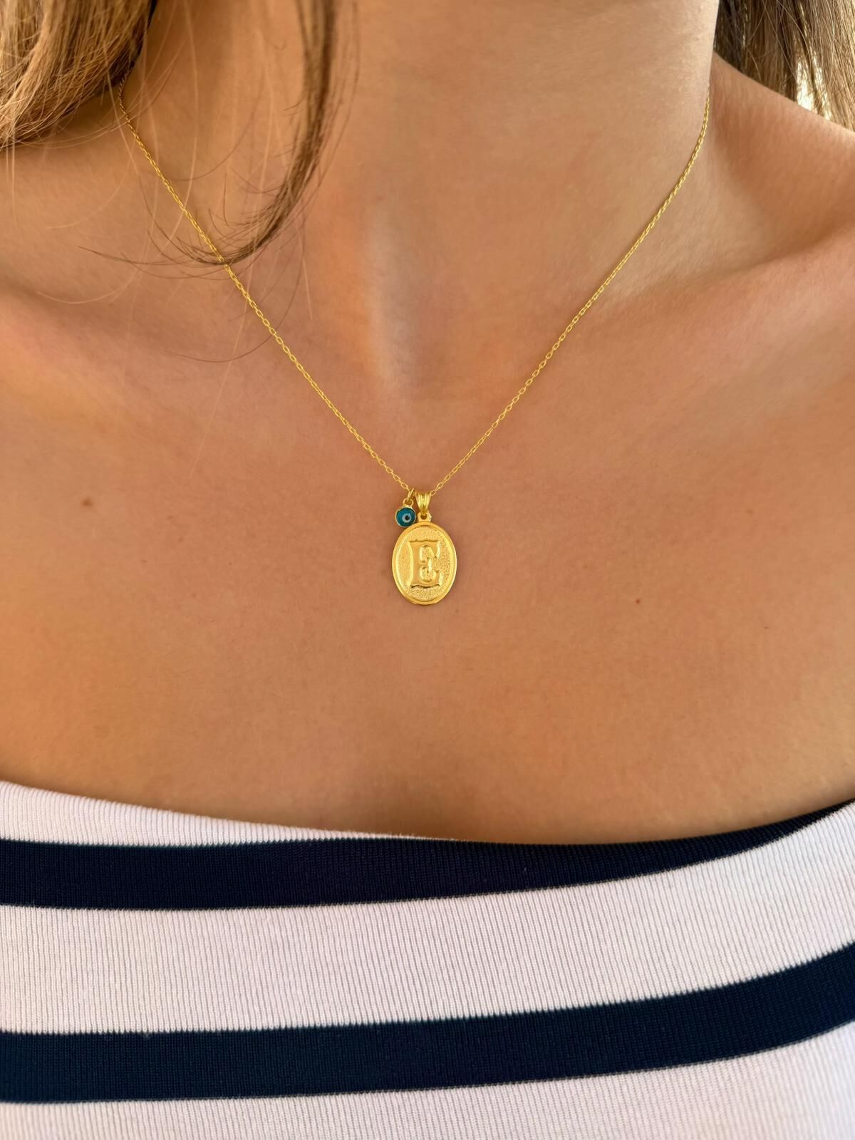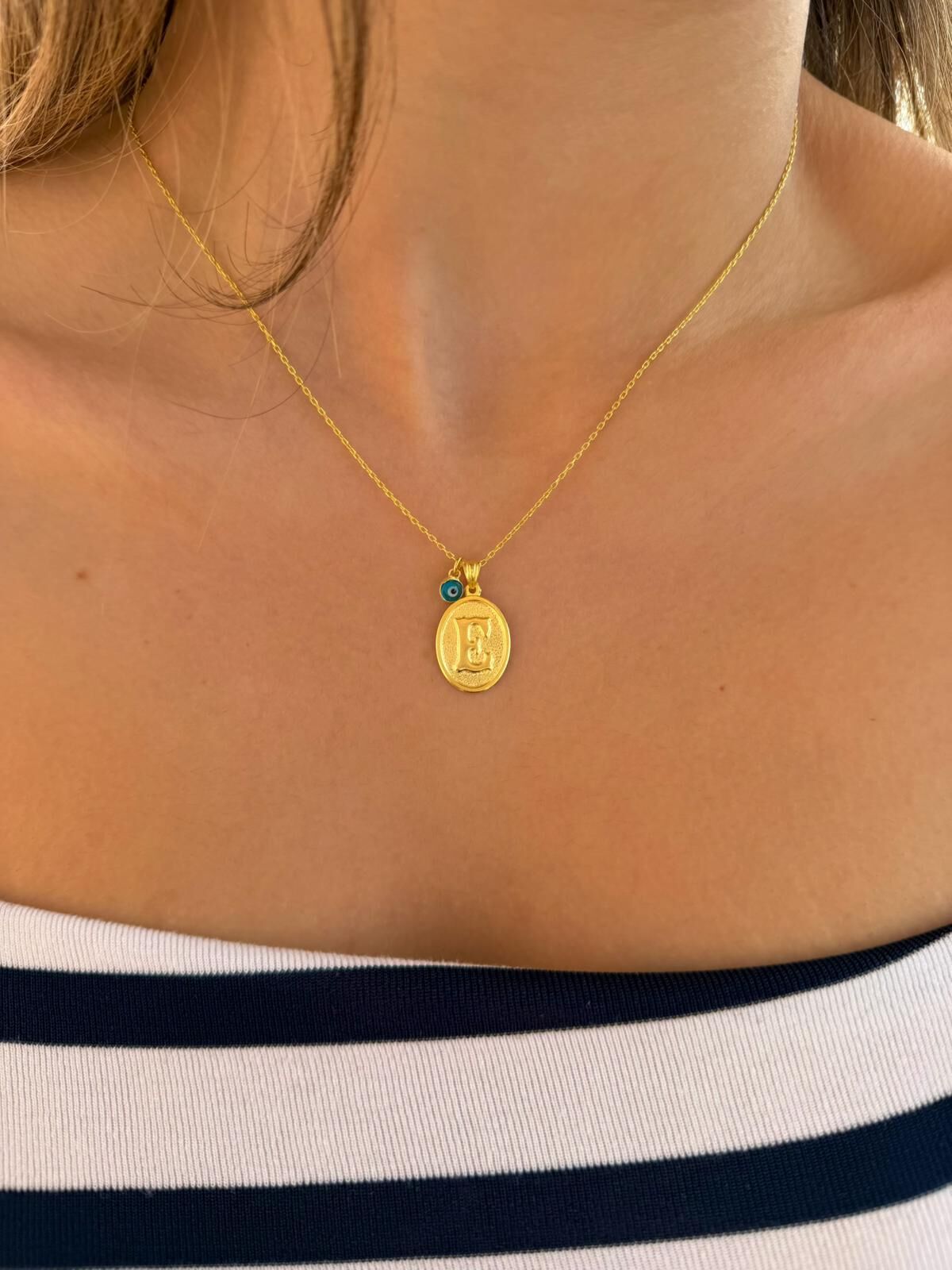 Vintage Plaka Nazar Boncuklu Harf Kolye | 925 Ayar Gümüş